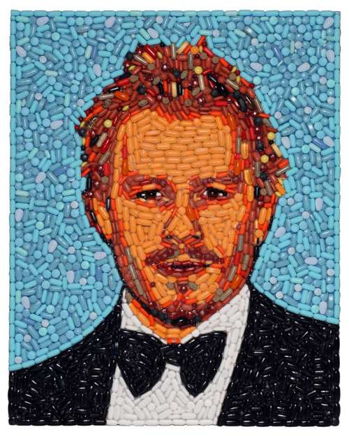Jason has spent over 10 years creating outrageous 3-D mosaic portraits of his favorite pop culture icons. Each portrait is created from the celebrities own discarded objects and junk such as broken sunglasses, make-up, gum wrappers, jewelry, deodorant, shoes, and other items. Famous faces like Lady Gaga, Andy Warhol, Pink, Donald Trump, The White Stripes and a lot more have been chiseled out of trash.